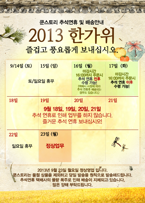 2013 ÄコÅ丮 Ãß¼® ¿¬ÈÞ ¹× ¹è¼Û¾È³»
